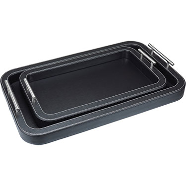 21013 :: JG 2PÇS BANDEJA RETANGULAR HOME&CO MDF COM COURO SINTÉTICO PRETO